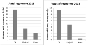De foreløbige resultater i antal og vådvægt af regnormene tyder ligeledes på, at man finder både flere men også større regnorme i et dyrkningssystem, des mindre jordbehandling der udføres. Dette er en fordel for afgrøden, da jordstrukturen forbedres betydeligt.