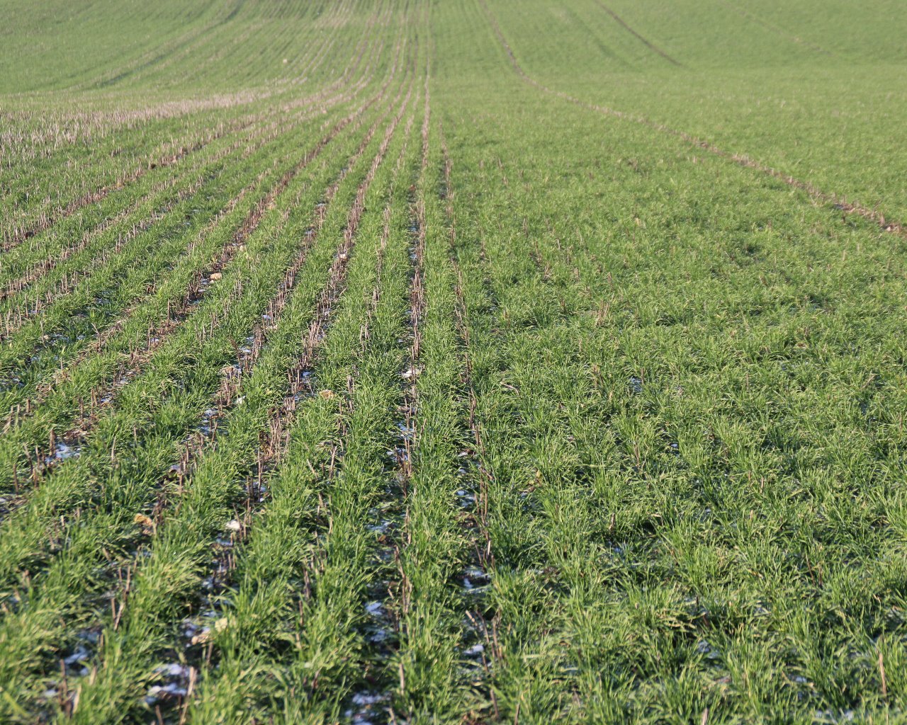Ved gummistøvlekonferencen 25. oktober så vi på vinterhvede sået med henholdsvis Weaving og Dale (med Seed Hawk skær). Den tydeligste forskel var, at planterne var mere krybende, når de var sået med Weaving-maskinen med de skrå skiveskær.